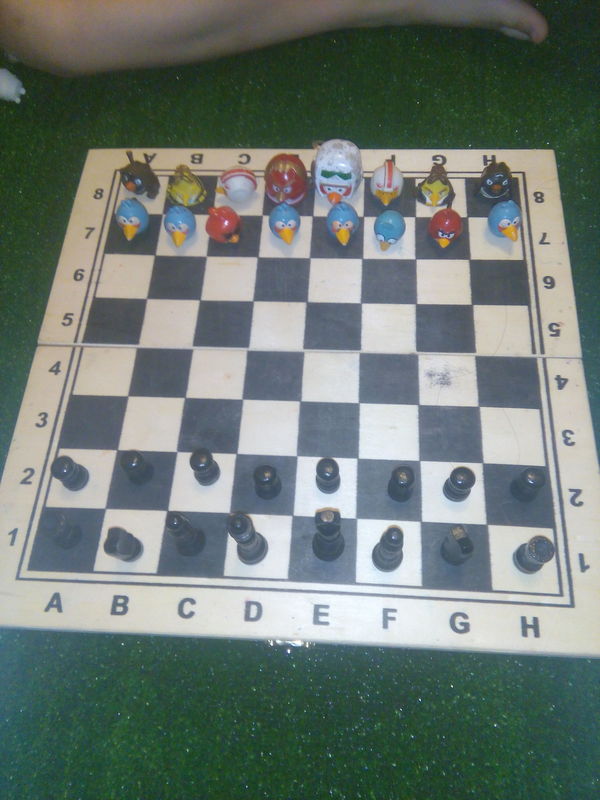 12 andy81 Птички начинают и выигрывают 9 лет назад Учу играть в шахматы ребенка.По ходу игры выясняются новые правила:Король может скакать на коне. Слон может раздавить кого нибудь. А пешки вообще беспредельщицы. Показать полностью 1 [моё] Шахматы Angry Birds