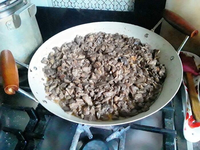 Часть грибов пожарили. Отличная добавка к жареной картошке и в яичницу хорошо добавить столовую ложку.