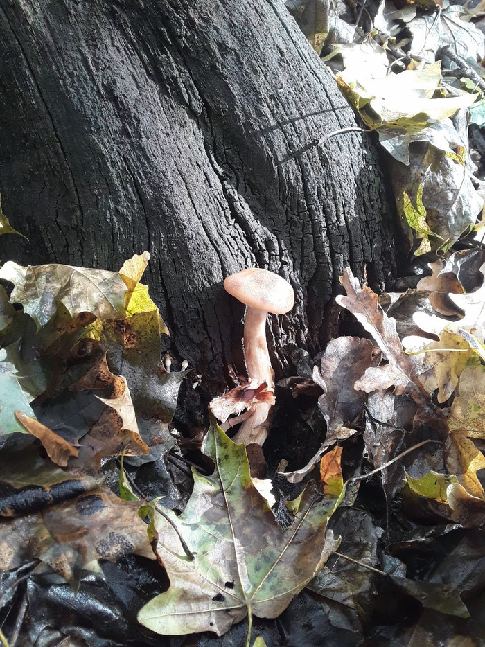 Гриб в реверансе. А если честно, что не осилил плотное покрывало прошлогодней листвы.
