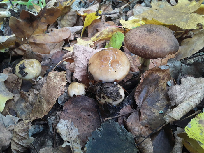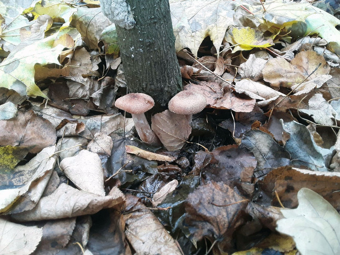 Обычная история, когда два или три опенка пробиваются сквозь опавшую листву.
