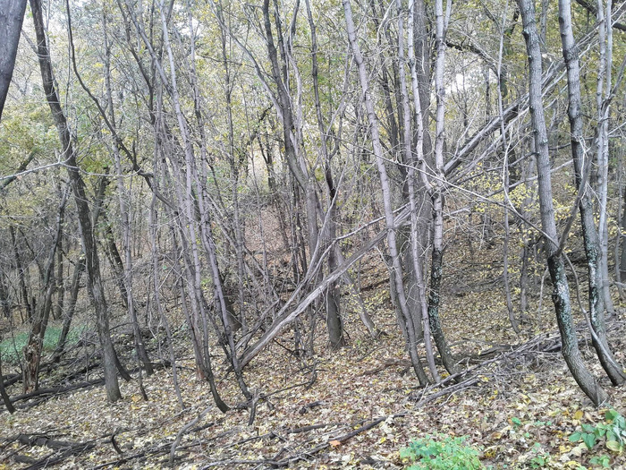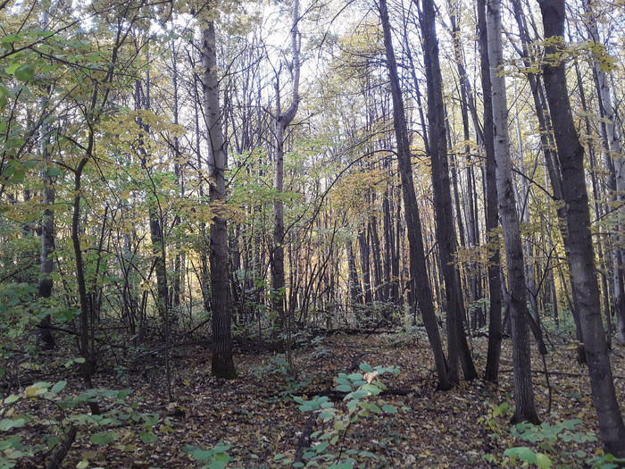Осень. Деревья сбросили листву и стоят частоколом из серых стволов. Особой красоты нет, особенно когда Солнце закрыто облаками. Внимательно смотрим под ноги красота именно там.