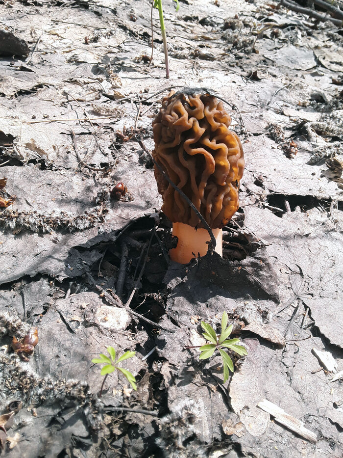 Второй грибной день - 2е мая. В этот день поехали сразу в правильном направлении - п.Сарай-Гир. Один из первых сморчков в этот день.