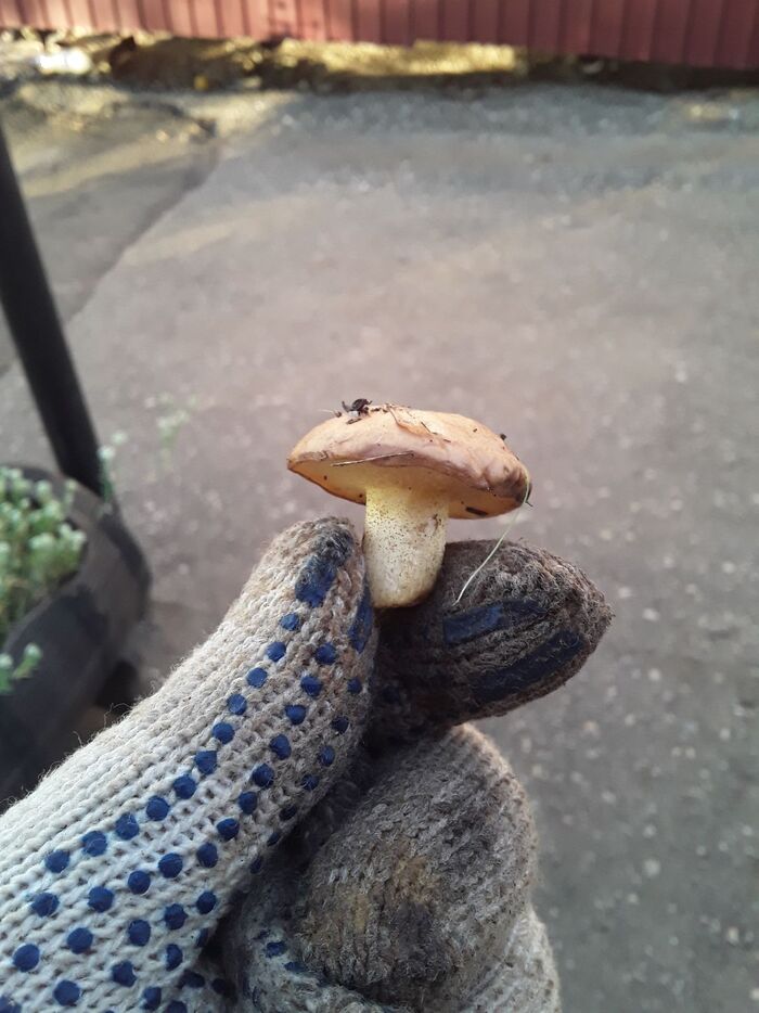 Моховик. Гриб хороший, вкусный, но мы собираем опята. Не стоит распыляться на разные сорта грибов. Как правило, каждый сорт грибов готовят отдельно и это существенно увеличивает время обработки в то время как все уже устали и валятся с ног. Гриб хорош, но мы проходим мимо. Наша цель - опята.