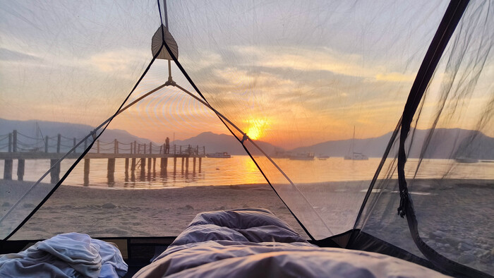Так так так, что тут у нас, шум моря, да что вообще может быть лучше? Ужин у костра на берегу моря и ночёвка в палатке.