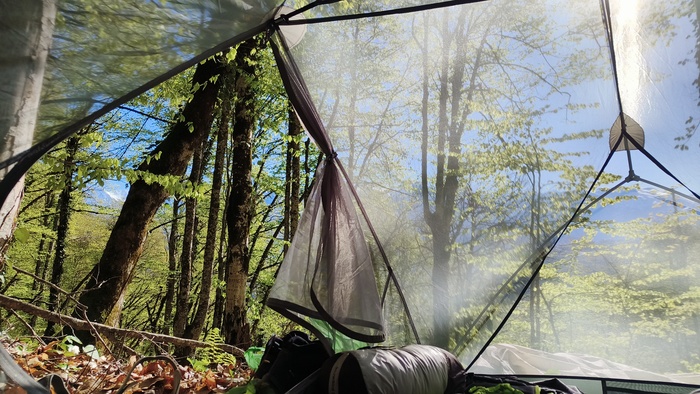 Ну или от уже не первых лучей солнца, потому что кто то слишком много спит. Ну а как не спать? Тишина, воздух, вчерашняя усталость от похода... Всем сновидений, во славу бунда.