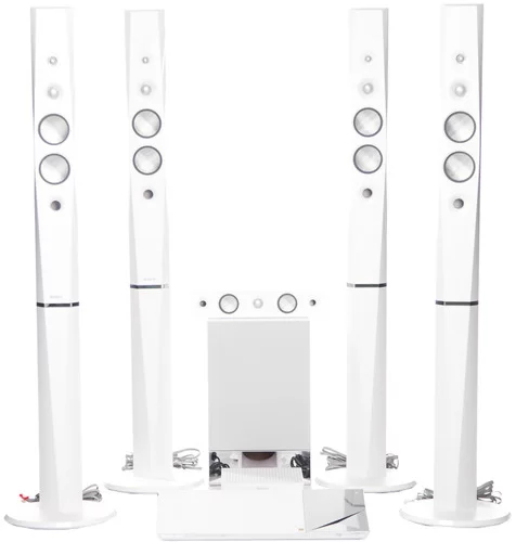 У него имеется беспроводной усилитель объемного звучания. Работает он только с двумя тыловыми колонками. После того, как я жопорук, его уронил, начались проблемы. Усилитель стал перезагружаться с частой периодичностью, иногда просто в режим ожидания отключался. Перед тем как начать мракобесить, звук из динамиков как будто начинал булькать, сильно искажаться. Грешил на провода от колонок: там плоская лапша из шести проводов. Подключал колонки к головному устройству - проблем и искажений нет.