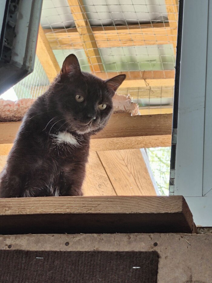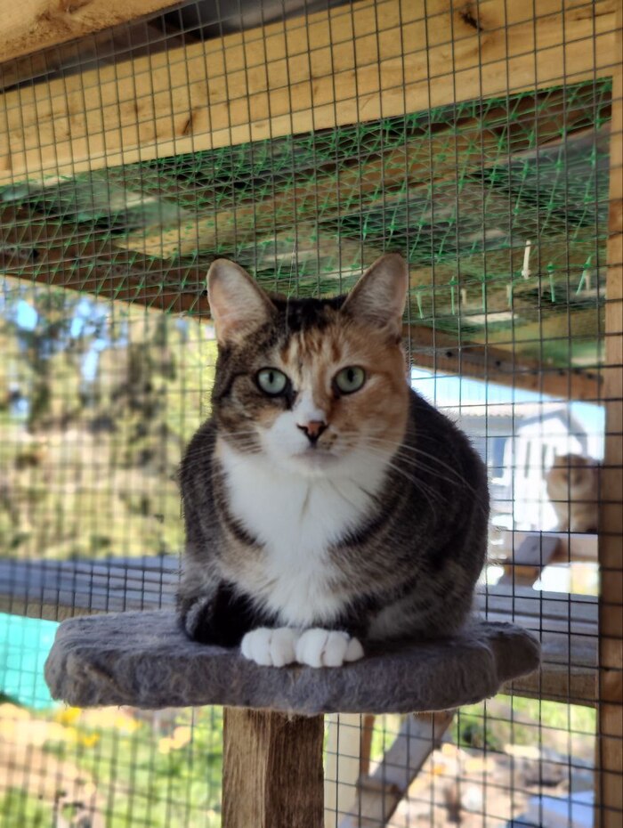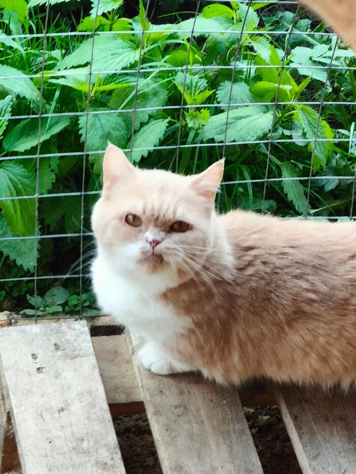 Ещё недавно был побег дрищей. Сбежали три кота, двое из которых через 10 минут с разбегу залетели в дом через дверь (я даже не успела понять, что они убежали), в Трехцветка сидела на крыше котовника и орала, так как не могла найти дырку, чтобы залезть обратно. Мне пришлось откусывать хомуты рядом с ней, делать дырку, ждать, пока она зайдет в котовник, потом эту дырку затыкать. Было забавно смотреть, как она сразу же побежала к миске заедать стресс.