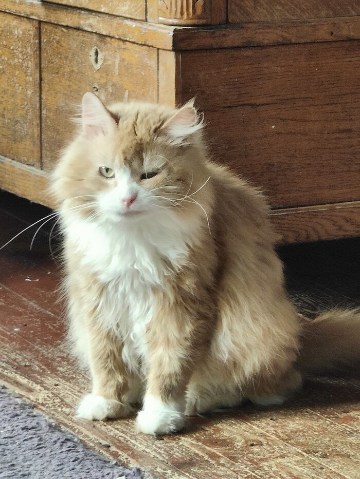 Всем привет. Недавно пришлось стричь ему когти. Это был какой-то треш. Он так орал, что мне стало стыдно перед соседями. Кусался беззубым ртом. Коты смотрели вот так