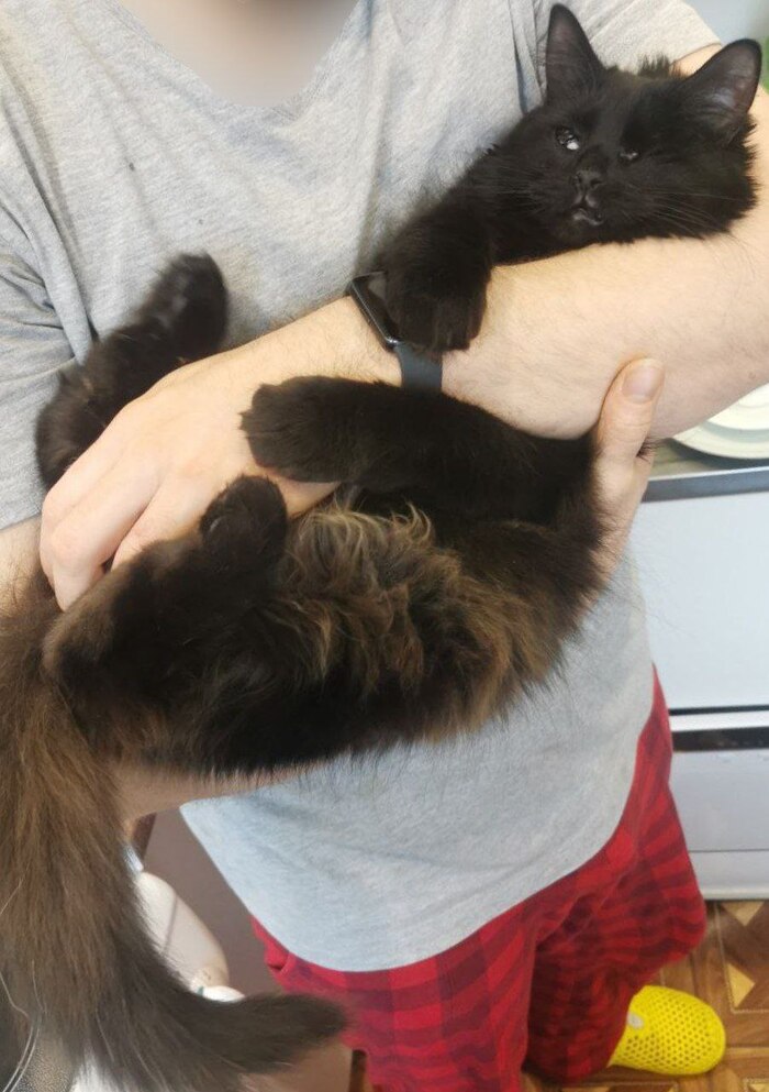 Собираемся с друзьями ехать купаться и загорать. Зашла в ВК. Увидела пост и понеслось. Сначала поругалась с ТС из-за того, что он не дал мне телефон того, кто фотографировал. Была жара и котенка мог хватить удар. Потом, не долго думая, мы мчимся в дорогу. В пути обзваниваем знакомых, которые могли бы хоть отнести котенка в тень. Находим таких знакомых. По приезду нас уже ждут с котенком в коробке.