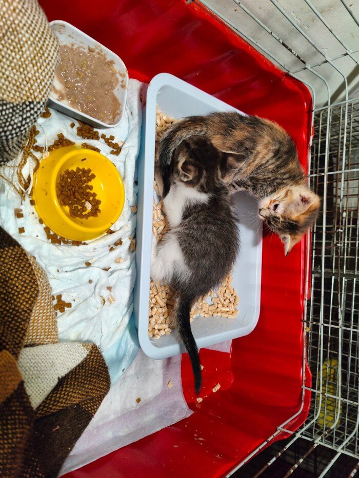 Всем привет от дурней. Отлично освоили лоток с первого дня. И ещё очень любят там играть. Докармливать пока приходится из шприца.