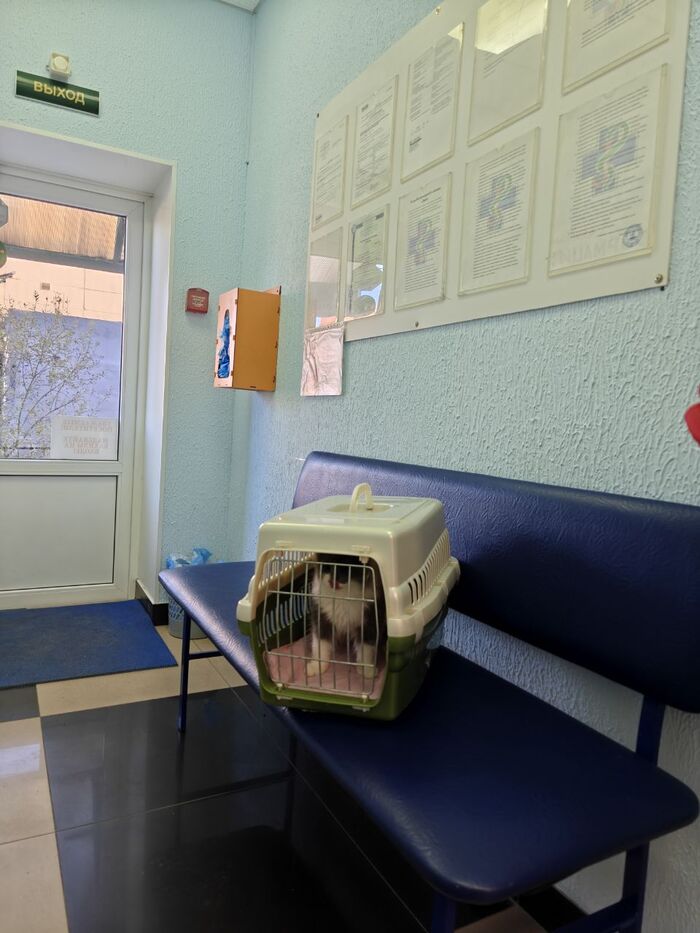 Едем в клинику, по пути ищем донора, так как котенок фарфоровый. В клинике сдаем кровь и проводим обработку от блох. Дальше с горем пополам находим донора и едем за ним.