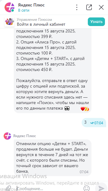Купил умную колонку 15 августа. Привязал карту оплаты. Там два месяца бесплатной подписки, то есть до октября, думаю, попользуюсь спокойно, а там оплачу сразу за год. И вдруг сегодня 22 августа в 5:59 прилетает списание от яндексплюс на 450 рублей. Удивился, конечно. Полез в приложение и выяснил, что неожиданно оказалась подключена услуга «Детям+Start», которой бесплатно можно пользоваться уже всего неделю. Помню, что такого не подключал. Видимо, это скрытый «подарок». Написал в поддержку.