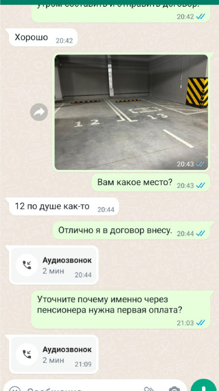 Прислал сразу скан паспорта и стал торопить с оплатой. Он прямо сейчас готов заплатить за три месяца вперёд. Я уже обрадовалась, что этот паркинг хоть кому-то пригодится, но в процессе обсуждения мне сообщили, что оплата на карту пенсионера. Начальник у него пенсионер и он готов только пенсионеру сделать перевод, чтобы где-то там не отчитываться, а потом будет проводить оплату наличкой🤦🏼♀️ По видеосвязи общаться отказался. Я начала искать похожие истории в инете - не нашла, зато нашла реального человека по данным с паспорта/предупредила.