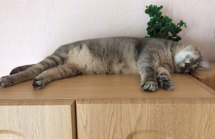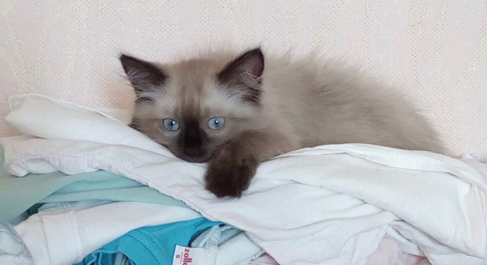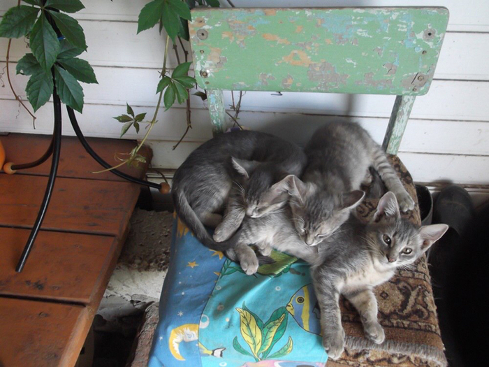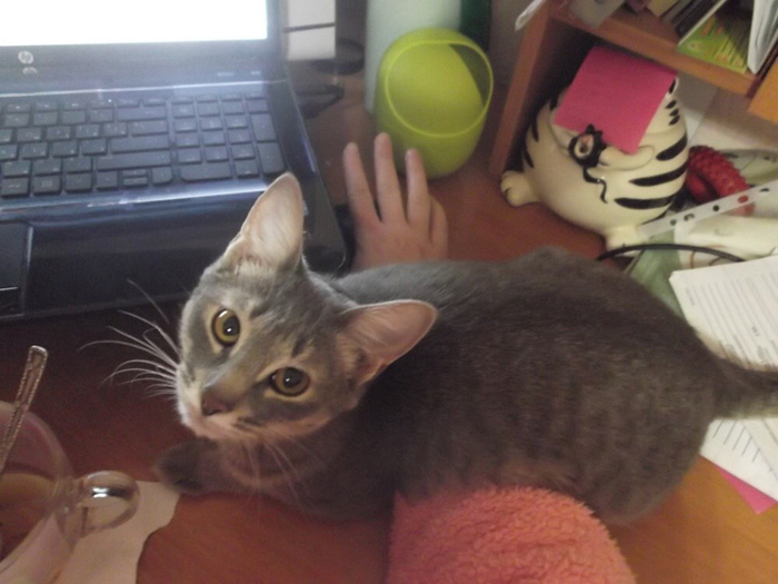 «Лишнюю» кошечку хотели пристроить, но кому нужна обычная серо-полосатая мурлыка? А у меня как раз появилась возможность завести домашнего любимца. Родились котятки в начале мая, на летние каникулы я отправила сына в деревню, а в сентябре забрала вместе с котёнком.