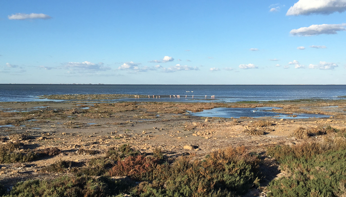 Ехали откуда-то с рынка, и вдруг таксист тычет в сторону моря, и начинает тормозить. Пригляделся, а там стая розовых фламинго отвисает у берега. На зиму они прилетают сюда почему-то. Но близко к ним не подойдешь, разлетаются.