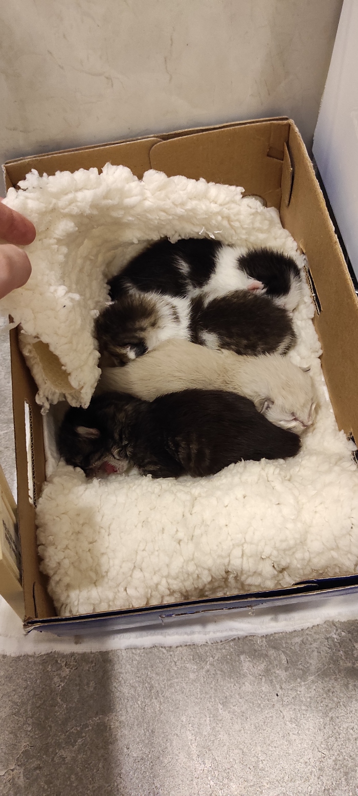 Оказалось, что какой-то моральный урод выкинул 4 новорожденных котят, которым дня 2 от роду, к мусорке нашей многоэтажки...