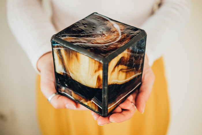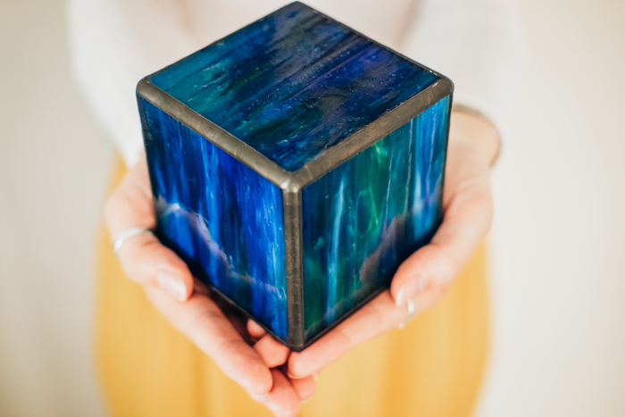 Реализовал давнюю идею - сделать лампу из стекла в виде подарочной коробочки с лентами и бантом. Процесс оказался трудоемким, результатом остался доволен на 100%, получилась такая как и задумывалась.