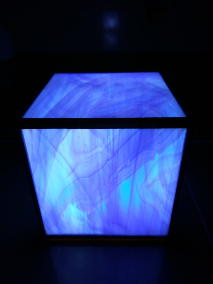 На складе поставщика витражного стекла выбирается лист опалового/опалесцентного стекла подходящего цвета/тона/прозрачности, рисунка. Такое стекло само по себе произведение искусства, каждый лист единственный в своем роде, разводы перья, прозрачности, неравномерности, все это готовая палитра.