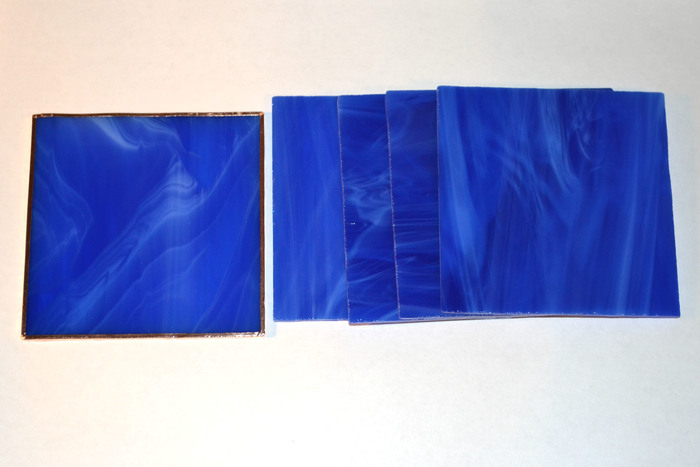 На фото ниже два фрагмента стекла лежат сверху голубого листа, который дает синеву неба. Нижний фрагмент малопрозрачный - из неподходящей части. Фото сделано для наглядности.