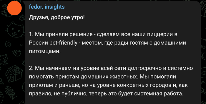 Не прогибайтесь под зоошизу, иначе завтра под дверью каждой пиццерии будет привязано по три псины, на питание которых, с вас будут требовать деньги!