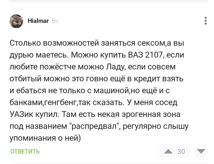2 aoblaka 4 дня назад Улыбнуло #comment_371048796Основной пост :) Показать полностью 2 Комментарии Жена Муж АвтоВАЗ Скриншот 1 1 1 Ещё 0