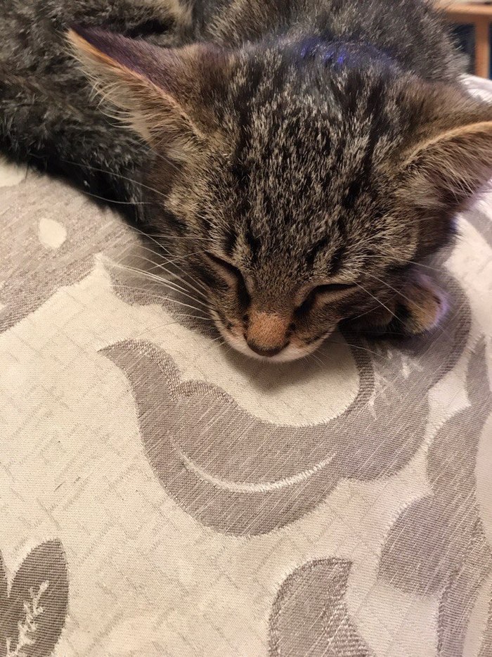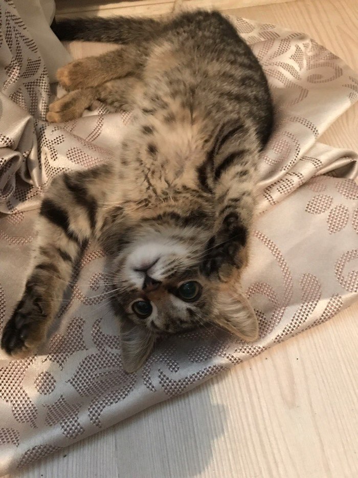 В общем, двоюродная сестра нашла вчера котёнка, мальчика, 3.5 месяца, очень красивый, ласковый, урчит как трактор, ушки длинные=3 . К лотку вроде приучен, все прививки сделаны у ветеринара, блохи и лишаи выведены(хотя был чист, как первый снег).