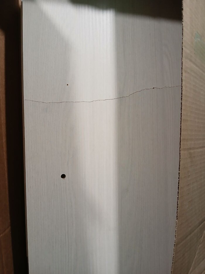 В очередной раз я совершил ошибку - думаю шкаф то и без дверцы постоит, она небольшая, соберу а потом новая приедет и повешу. Открыл коробку, а там ещё и разбитая стенка.