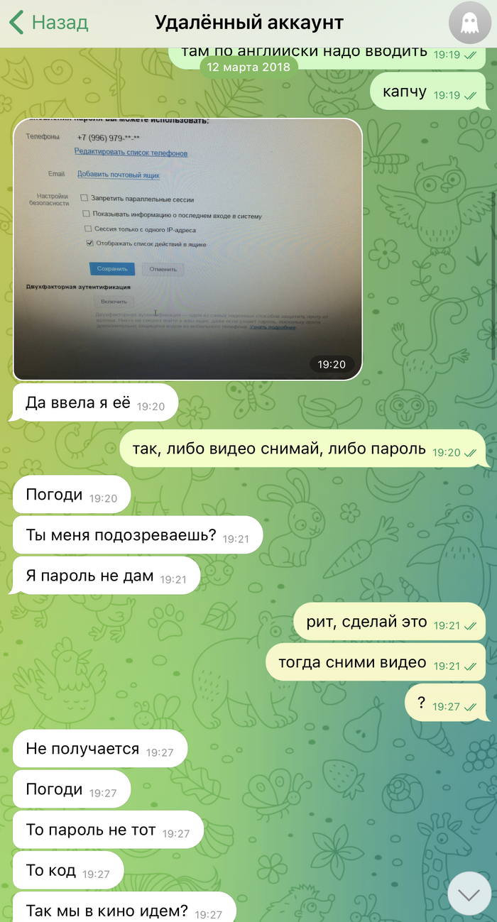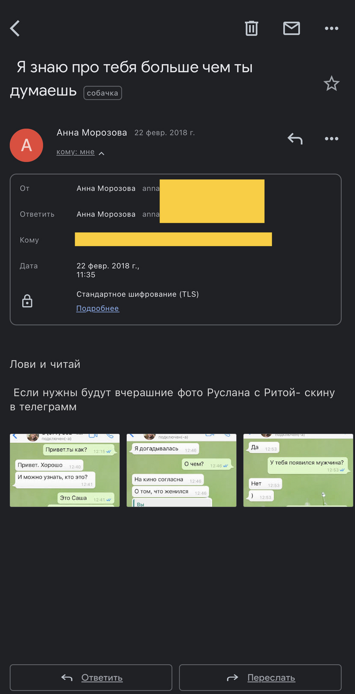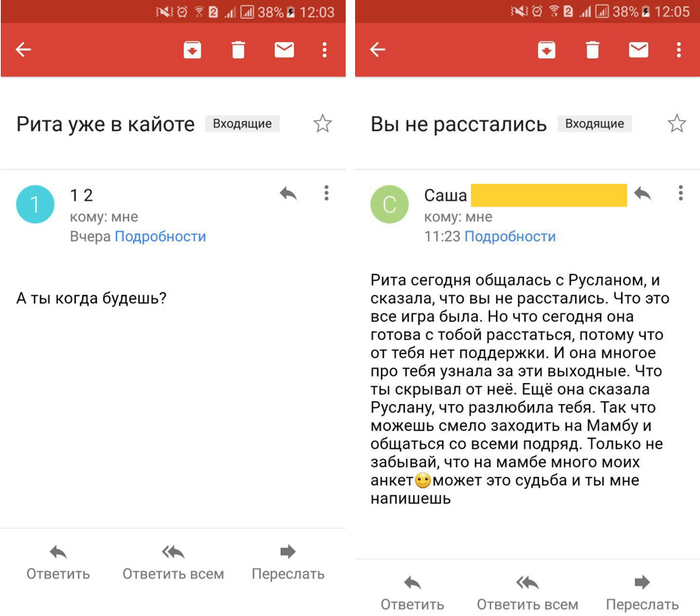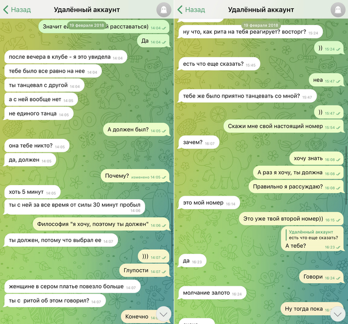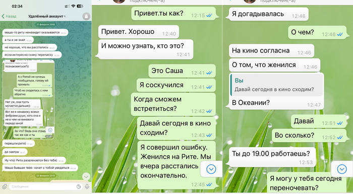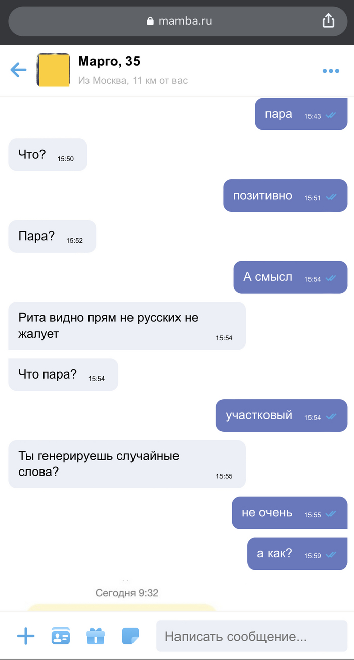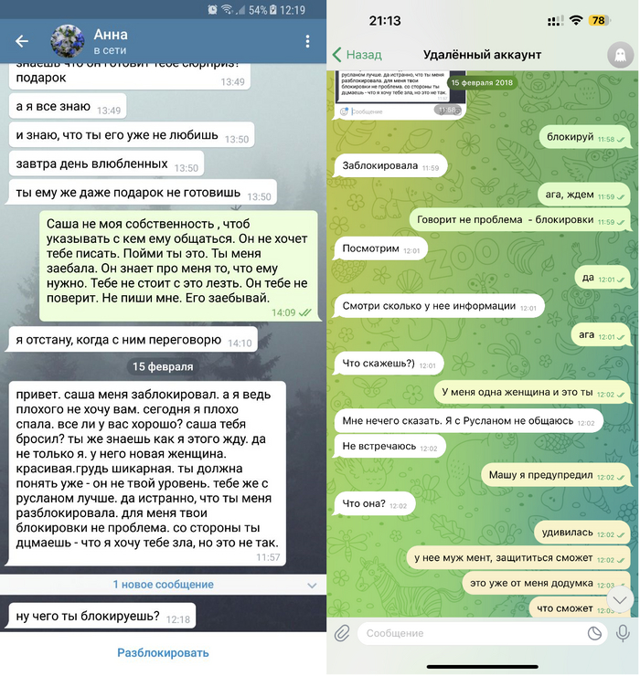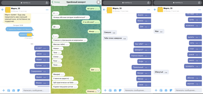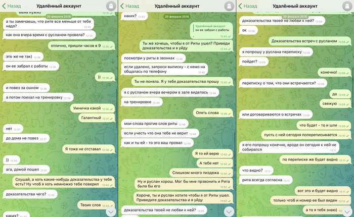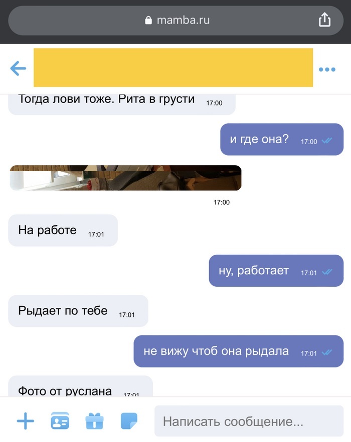 В дальнейшем эта переписка мне выйдет боком. Жена будет в ярости от того, что я общался с ее друзьями. Ах да, забыл сказать – это ее давние друзья и этот муж, конечно, слил жене инфу.
