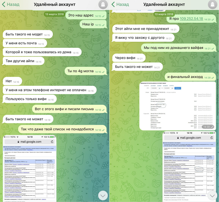 У меня закрались смутные подозрения. Дело в том, что жена-1 за 15 лет ни разу не скрывала время в сети. А тут такие события и это произошло? Я уже не верю в совпадения.