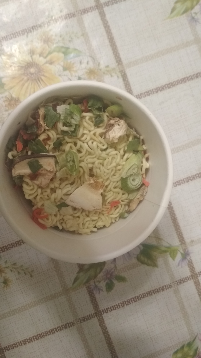 Внутри, помимо лапши, был стандартный набор - специи в пакетике и всякие приправы, уже высыпанные в лапшу.