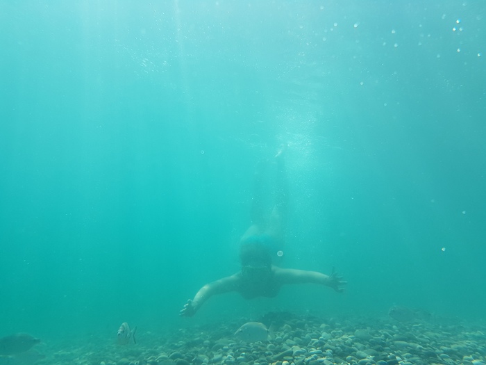 Отдельная песня это море. Нет, не так – МОРЕ. Оно чистое, прозрачное. Заходишь по шею и видишь свои стопы. Мы плавали с масками, искали ракушки, раскапывая дно, а рыбки ждали рядом. Отплываешь от раскопок и рыбы бросаются на это место в поисках вкуснях.