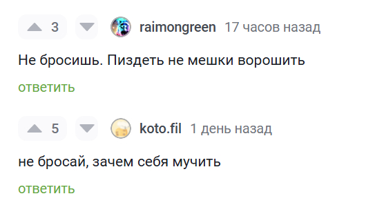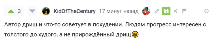 И тут я соглашусь на 100%, но перефразирую — если собрались худеть/здороветь, но уже вторую неделю подряд смотрите в завтрашний день со слезами на глазах, то либо меняйте подход, либо бросайте к чертям собачьим. На фундаменте из мазохизма очень трудно построить счастливую жизнь.