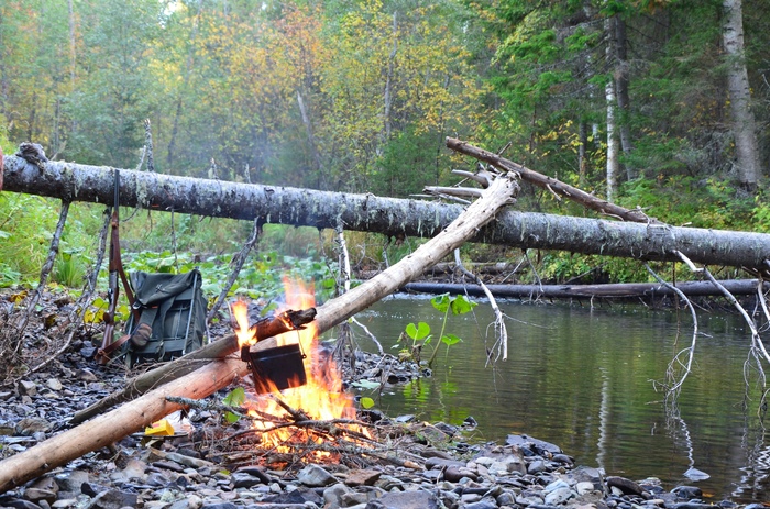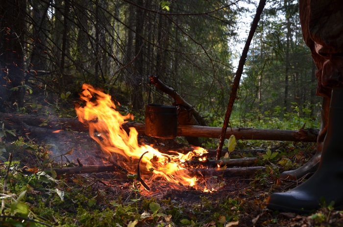 Перед сном посидел у костра, послушал лес, почувствовал что в спину кто то смотрит. Неприятно, мурашки бегают. Под рукой фонарь, но толку от него в лесу заросшем.