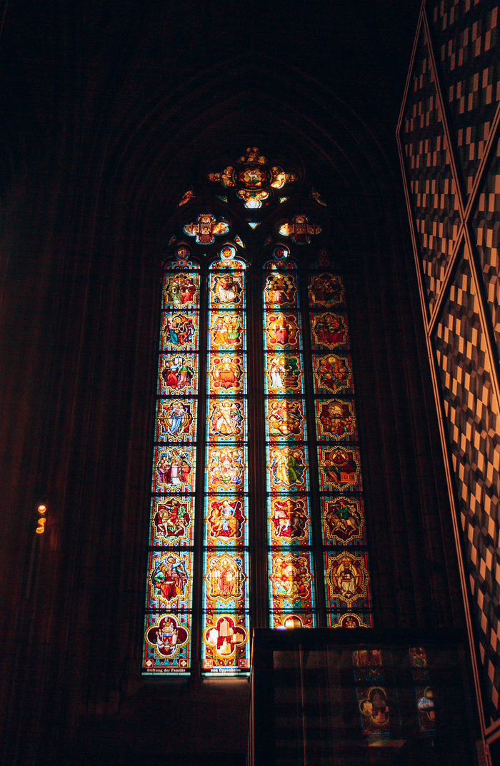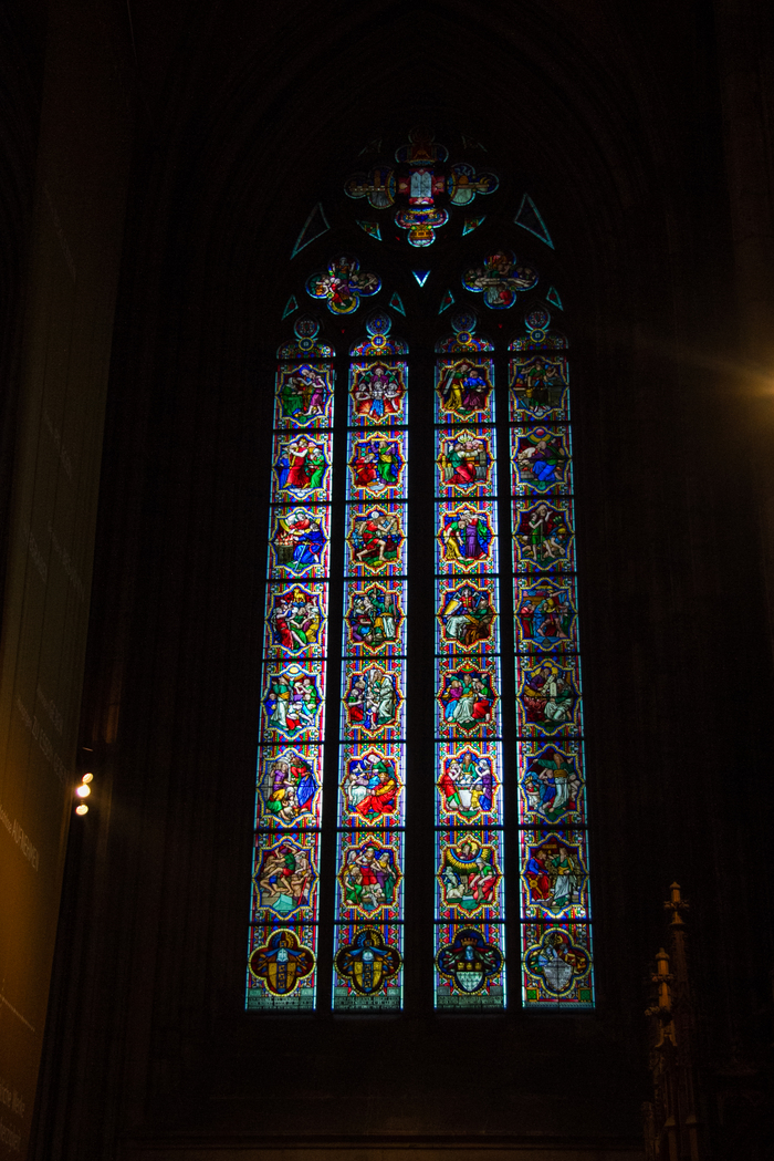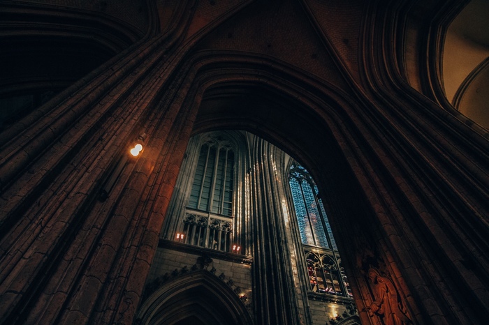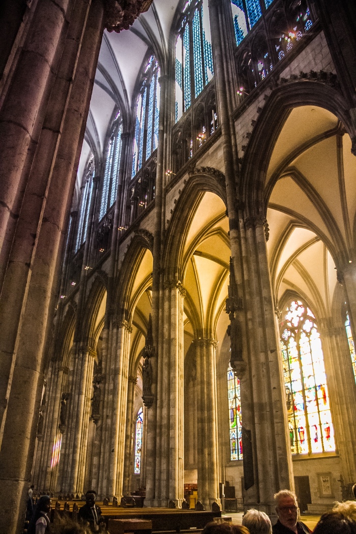 Это ощущение остается с вами и внутри собора, где группа колонн и арок поддерживает высокий неф. Мягкий свет сочится через ослепительные витражи, среди которых есть и великолепный новый, созданный Герхардом Рихтером (в трансепте). Калейдоскоп из 11 500 квадратов 72 цветов — абстрактная картинка Рихтера была названа «симфонией света». Легко понять причину этого — особенно во второй половине дня, когда на витраж попадают прямые солнечные лучи.
