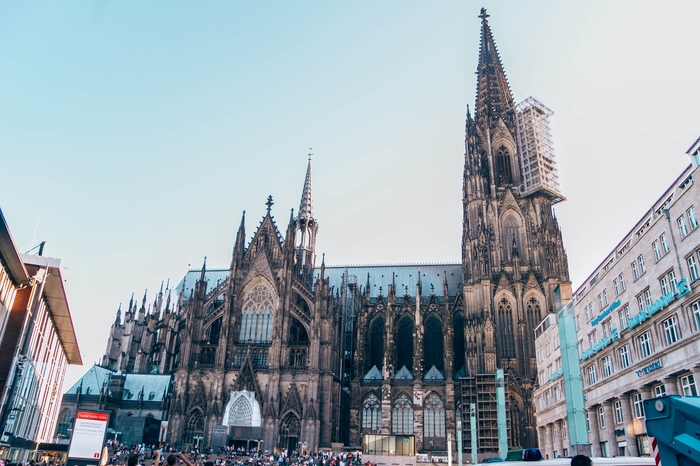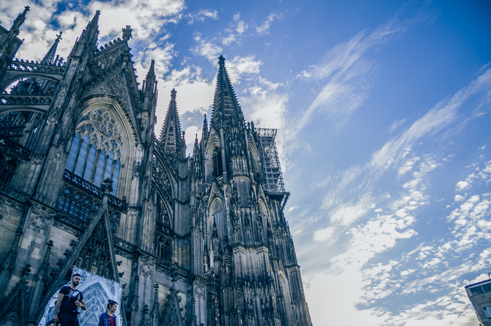 Географический и духовный центр Кёльна и его уникальная жемчужина, притягивающая туристов — великолепный Кёльнский собор. Два стремящиеся ввысь шпиля-близнеца делают его Эверестом среди других соборов, сокровищницей искусства и драгоценностей. Его возвышенный облик и достойное окружение не могут не тронуть даже самых искушенных любителей достопримечательностей.Строительство началось в 1248 г. в стиле французской готики, но продвигалось медленно и почти остановилось, когда закончились средства. Полудостроенная церковь так и стояла почти 300 лет. Во время оккупации города Наполеоном ей даже пришлось служитьконюшней и тюрьмой. Через несколько десятилетий щедрая дотация прусского короля Фридриха Вильгельма IV позволила, наконец, в 1880 г. завершить строительство. Строительство Собора велось в два приема — в 1248—1437 гг. и в 1842—1880 гг., всего 632 года. К счастью, собор избежал бомбардировок во время Второй мировой войны — на нем есть только следы ударов шрапнелью. С 1996 года собор внесен в список мировых сокровищ Всемирного наследия ЮНЕСКО.
