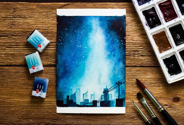 Ну кто ж не рисовал космо-небо осваивая акварель)