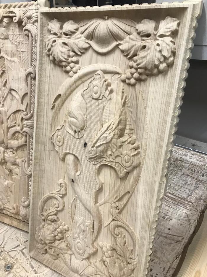 Резал черновая 4мм, чистовая конусная с шариком 0,5мм. Общая высота будет 120мм размер 650*350 , после склейки.