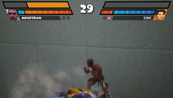 А дальше интереснее, даже, если не играть на фоне реальности используя камеру, а выбрать стандартные фоны (открываются по мере прохождения) которые зачем-то используют гироскоп!!!! Для нормальной игры, приставку держать надо под углом в 90 градусов относително поверхности земли блин!!!! Камера постоянно узежает и поле боя пропадает из виду!!!!а пока ты как шаман машешь приставкой в воздухе ищя где же драка, тебе успевают хорошо навешать и провести в твой адрес комбо!!!! А если ещё рядом и источник помех....то поле боя и вовсе постоянно смещается в сторону источника, и играть можно только на круьящемся во все стороны стуле!!!!