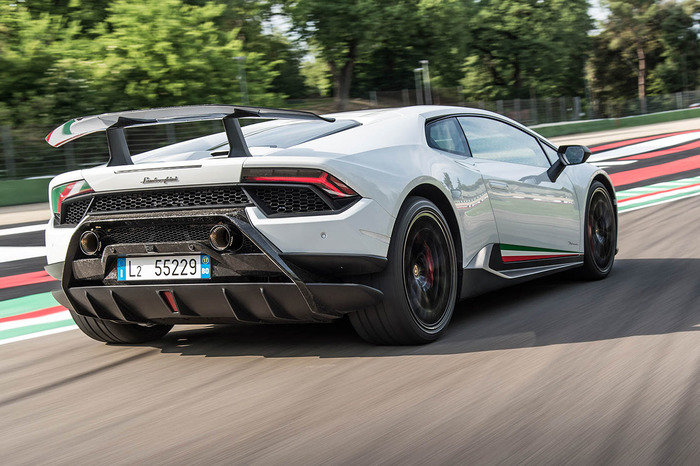 Уже на этой фотографии можно заметить некие построения их прямых и гнутых линий. Поскольку первоначальная идея предполагала несколько ракурсов, всех их нужно было как-то завязать вместе, тем самым обусловив композицию, не просто говоря "это же одна машина, итак понятно". За центральный объект был принят ракурс спереди сверху, что позволяло создать некую структуру, которая служила бы машине основанием. Perfomante — это улучшенная версия Huracan, отличающаяся от него более мощным двигателем, гораздо более гоночными повадками, улучшенной аэродинамикой и электроникой. В качестве опции, либо в базе под дверями машины располагают итальянский триколор. Я решил провести между этим параллель и расчертил под машиной нечто, напоминающее флаг, который с одной стороны распрямляется от изгиба, а с другой расходится каждой полосой отдельно. Особенно это стало читаемо после покраски его и начала работы над задним ракурсом: