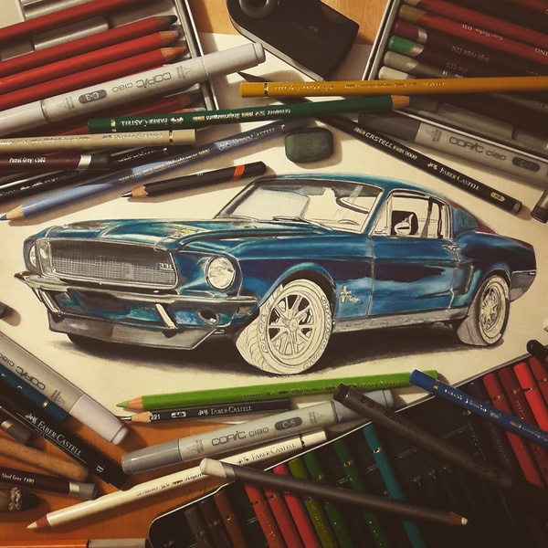 Вообще конечно лично по мне получилось здорово, глаз пока что ни за что не цепляется ) Карандаши хорошо легли, маркеры себя проявили тоже здорово... вот вроде хочу что-нибудь сказать о работе, но ей богу нечего. Действительно: Mustang - он и в Африке Mustang 😅