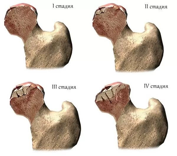 Если не углубляться в врачебную терминологию, то из-за частичного или полного временного отсутствия кровоснабжения тазобедренного сустава происходит инфаркт костной ткани. Замедляются все процессы и происходит отмирание головки бедренной кости. Также происходит деформация сустава, укорачивается нога и добавляется хромота. Болезнь протекает в различных стадиях. Если заметить её в самом начале, то есть возможность пройти лечение без сильных осложнений. Но если взять последующее стадии (например в моём случае это 4 группа по классификации Catterall, то сюда добавился: синовит, отёк костного мозга бедренной кости, бурсит и мышечная дистрофия)