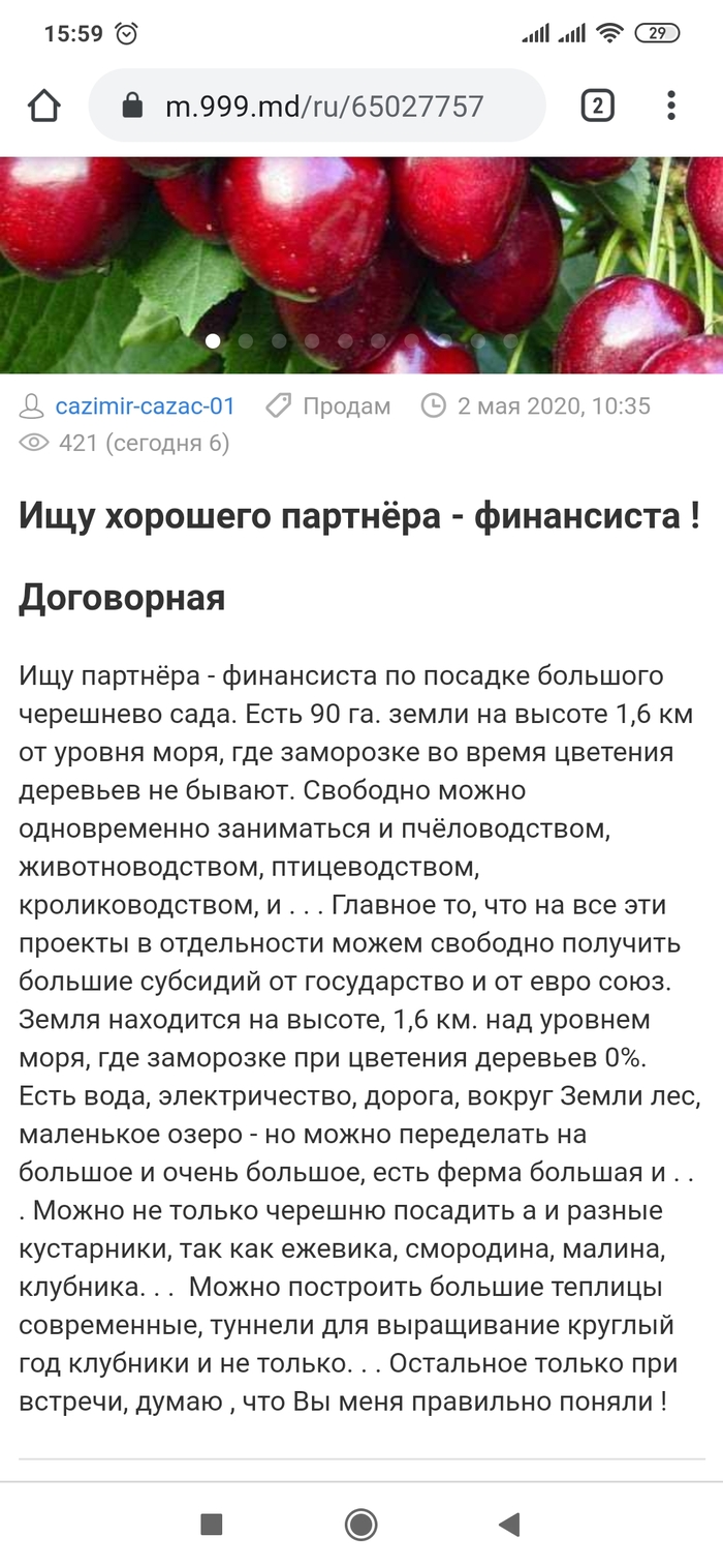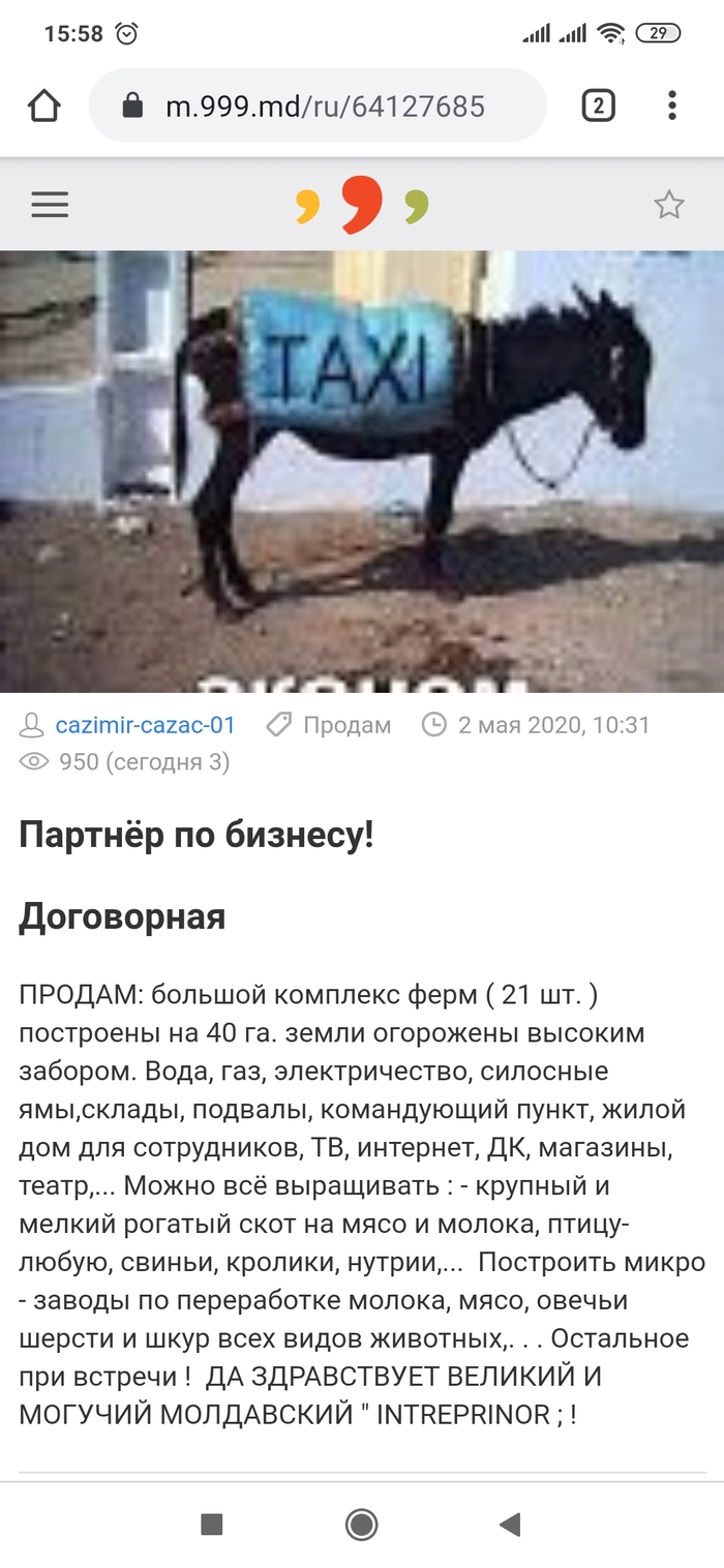 4 artyfon Сообщество SMM и SEO Гуру маркетинга 5 лет назад Наткнулся на днях на одно объявление на популярной молдавской доске объявлений. Зашёл в профиль того, кто выставил объявление, а там кладезь перлов. Наслаждайтесь) Показать полностью 4 [моё] Из сети Боги маркетинга Объявление Длиннопост Ещё 0