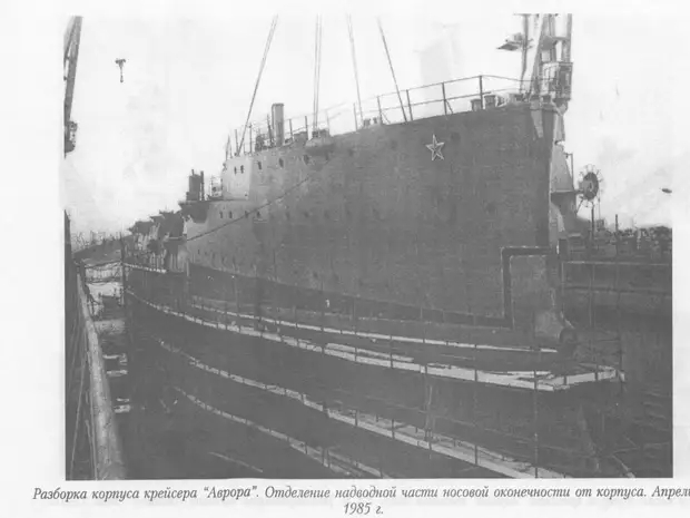 За время нахождения в доке «Аврора» подверглась настоящему разграблению со стороны местных жителей и рабочих: были украдены иллюминаторы, части медной обшивки и предметы внутреннего убранства, вплоть до дверей в каютах. Всё это богатство до сих пор можно встретить в близлежащих садовых товариществах.