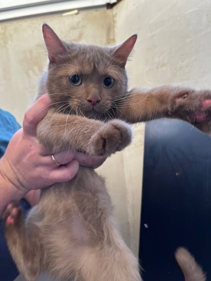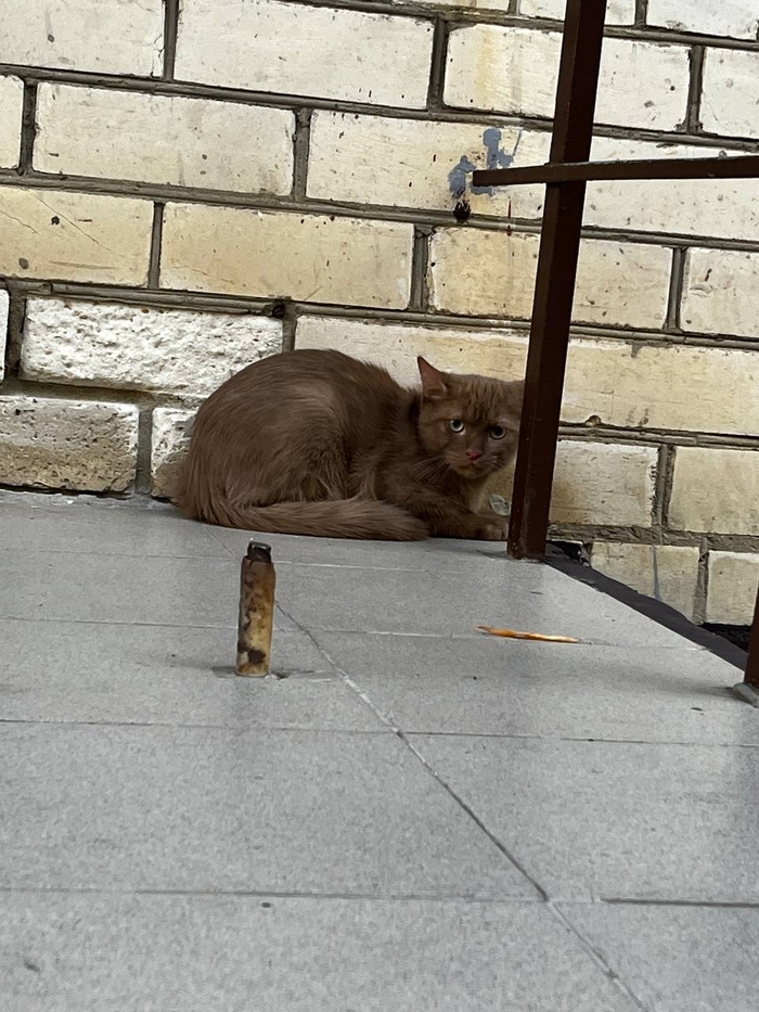 Найден котяра, возраст меньше 2 лет. Без пятен. Видно что домашний-коготки обстрижены, лапки розовые. Орал у подъезда. В районе много собак, решили передержать пока у себя, чтобы ничего плохого с ним не приключилось. Развесили объявления по району-остановкам, магазинам и мусорным площадкам.