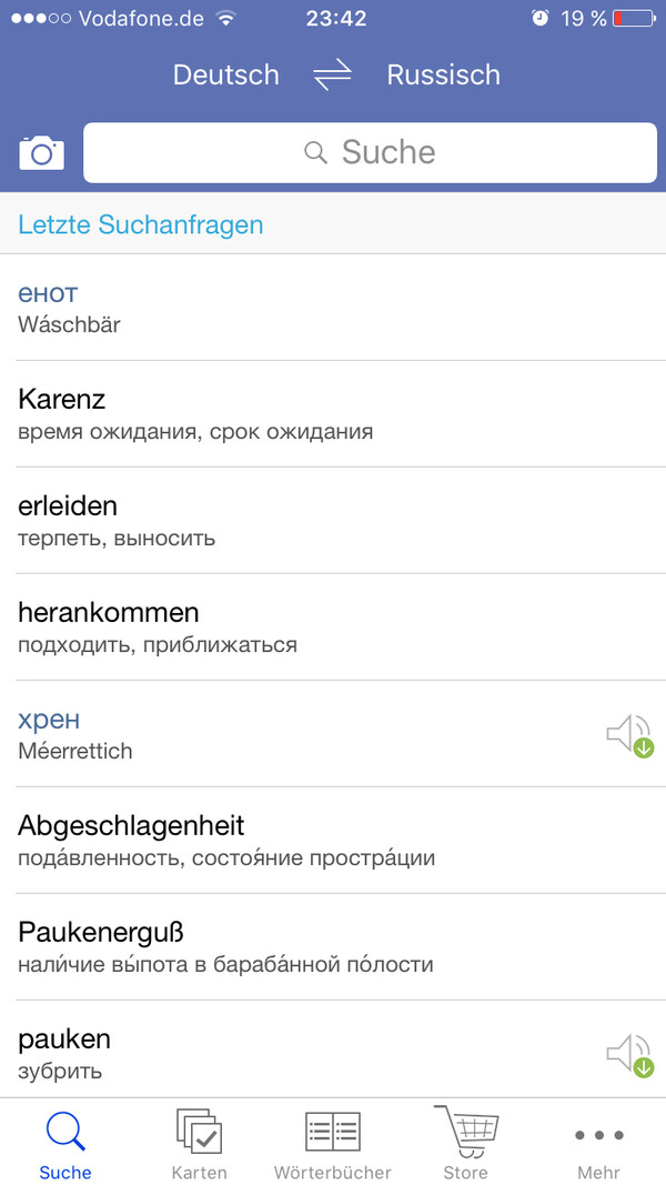 Моя любимая база словарей, которая каждый день выручает меня при написании историй болезни и в повседневной жизни. Единственное печальное обстоятельство - купленные однажды на Android OS словари не распространяются на iOS, поэтому при смене смартфона мне пришлось заплатить еще раз. Es lohnte sich jedoch😊