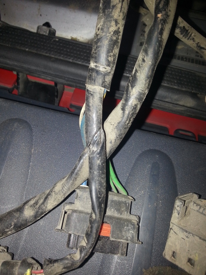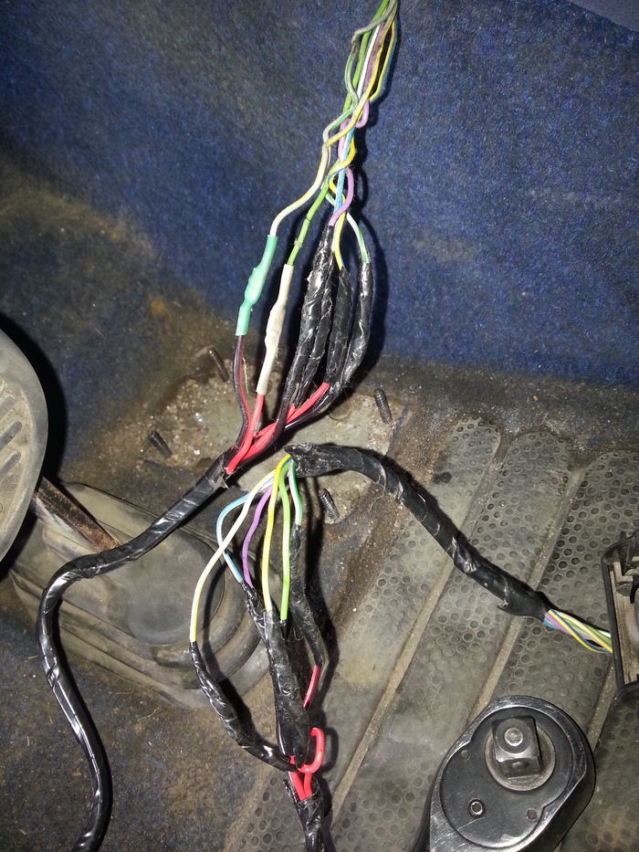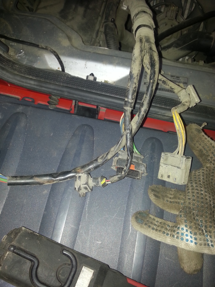 отцепляем все разъемы с этого жгута и вытаскиваем жгут через моторный отсек. Теперь этим жгутом можно удобно заниматься.