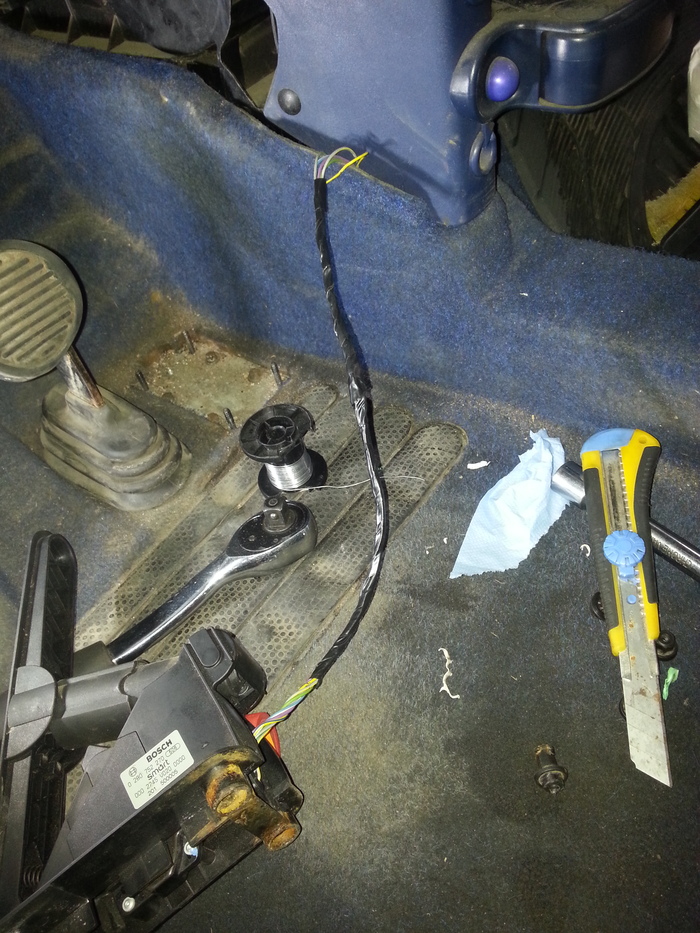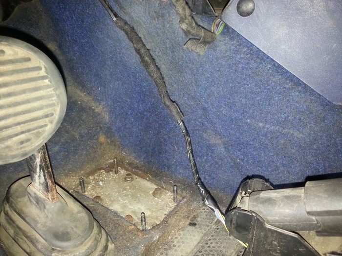 Откручиваю педаль газа и прихожу в крайнюю степень замешательства — провод от педали газа идет не там, где должен и выглядит колхозно.