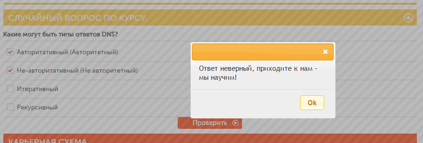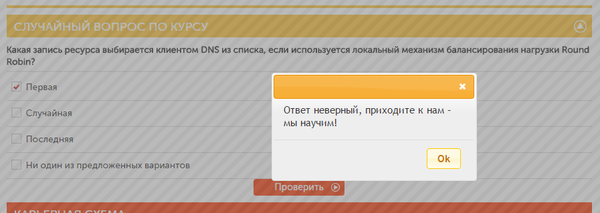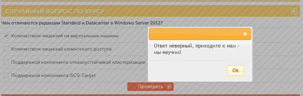 Зайдя к ним на сайт (не буду кидать ссылку, гуглится быстро), можно посмотреть возможные курсы, выбрать интересующий, изучить его содержание и что вы получите по его прохождению. Тут же можно ответить на случайный вопрос из курса, так сказать проверить свои знания. По логике, ответили правильно - вы молодец, зачем же вам этот курс? Неправильно - "приходе, мы вас научим!". И вот тут академия делает весьма некрасивый финг - правильные ответы на эти тесты постоянно меняются. Вопрос один, варианты ответов те же, но вот правильный ответ всегда разный. =) Интереса ради прошелся по десятку вопросов из трех разных курсов, выбирая 100% правильные варианты, а в ответ получал одно и то же сообщение "Ответ неверный! Приходите - мы научим!". Как думаете, это мошенничество? Введение в заблуждение? Курсы отнюдь не дешевые, а слабообразованные или только начинающие специалисты могут и повестись на такую провокацию.