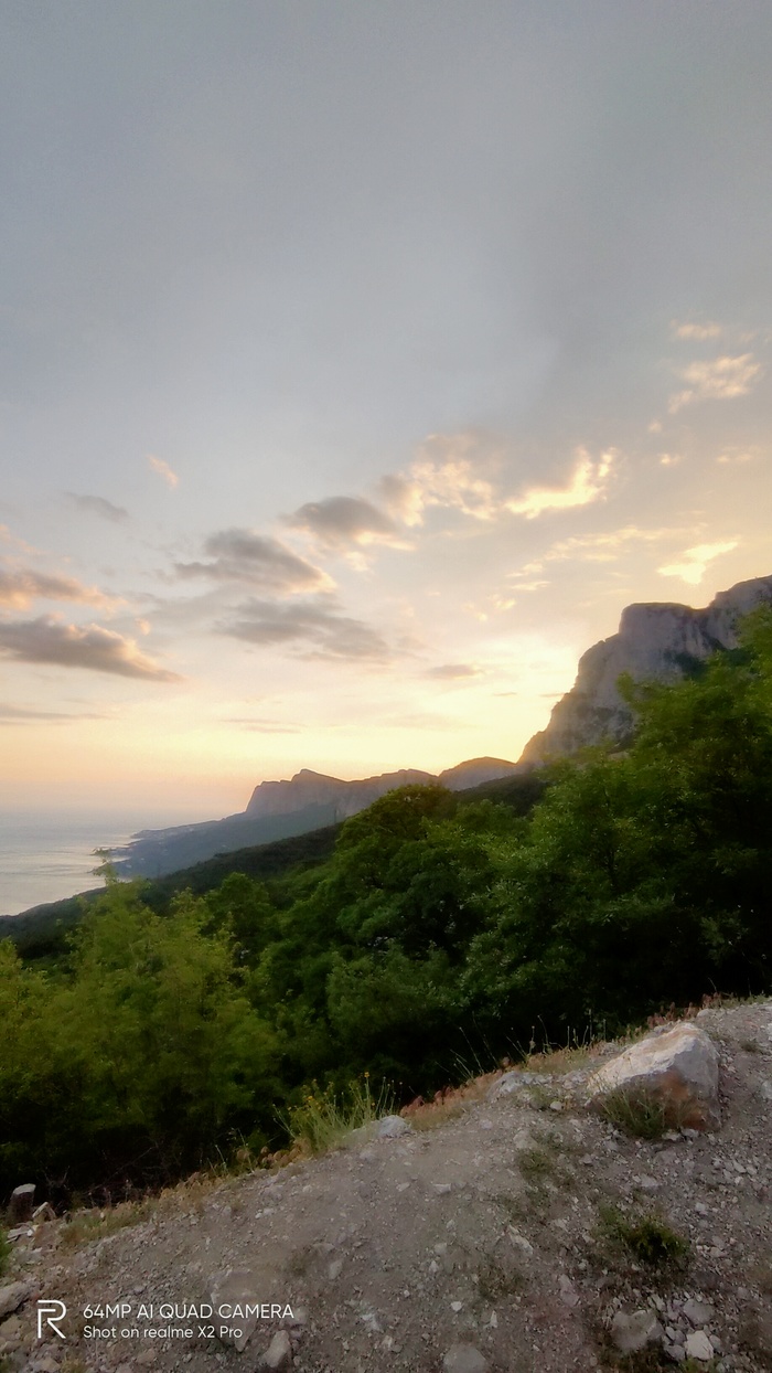 Взяли скутер на прокат и поехали в Мимо Форосской церкви и Байдарских ворот в Байдарскую долину. Успели посетить Скельскую пещеру. И каньон который расположен рядом. На обратном пути, застали такой закат.