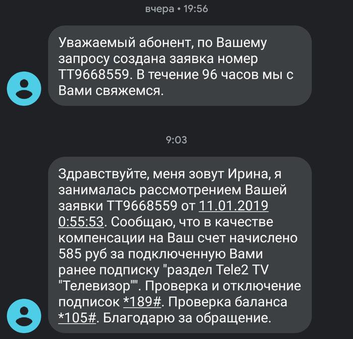 Деньги я назад получил, но вымораживает текст: "за подключенную Вами ранее подписку" - Теле2, Я не подключал подписку!!!